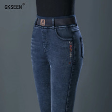 牛仔裤女2025春季新款加绒加厚小脚裤中年妈妈松紧高腰修身铅笔裤