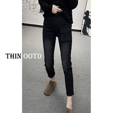超高腰黑色小脚牛仔裤女2025年新款秋冬加绒高弹力紧身显瘦铅笔裤