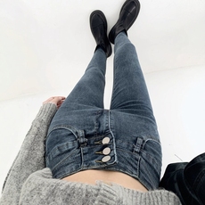 灰色高腰紧身弹力牛仔裤女秋冬加绒不臃肿修身提臀显瘦铅笔小脚裤