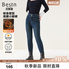 百斯盾官方【轻暖绒】女士牛仔裤25秋冬高腰修身显瘦塑形小脚裤