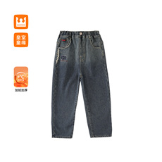 皇室童缘男童渐变加绒牛仔裤冬季新款儿童时尚百搭直筒裤中大童