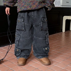 EBAER儿童冬季裤子男童加厚加绒牛仔裤2025新款女童冬装直筒裤厚
