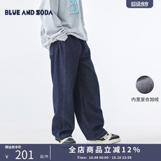 迈特优美式加绒牛仔裤男士春秋冬季2025新款宽松直筒男生阔腿裤子