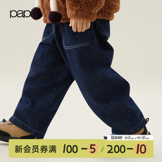 【新品】papa爬爬秋冬季儿童牛仔裤加绒加厚男女童假两件宽松百搭