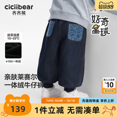 蓝汽水25年冬季新款亲子中大男童不落色牛仔裤加绒保暖百搭休闲裤