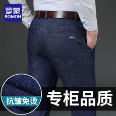 罗蒙秋冬季新款直筒牛仔裤男商务休闲中年宽松高腰弹力高端厚款