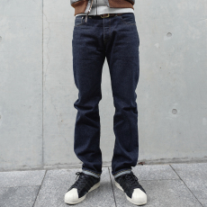 小溪秋冬15.8盎司赤耳丹宁深蓝黑原色牛仔裤潮男修身直筒原牛长裤