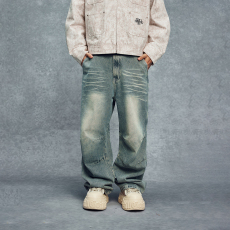 素拼男装秋冬款男士复古工装牛仔裤宽松廓形设计感直筒裤长裤子