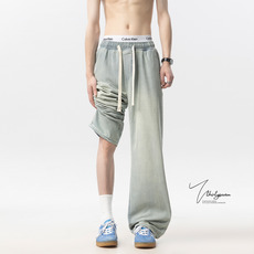 V37水洗渐变牛仔裤男款2025秋季新款美式高街青少年宽松直筒裤子