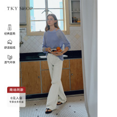 [商场同款]TKY SHOP白色牛仔裤女宽松直筒裤休闲长裤10I1OA01J012