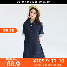 设计师款佐丹奴牛仔连衣裙女夏季新款薄纯棉绑带短袖裙子18465805