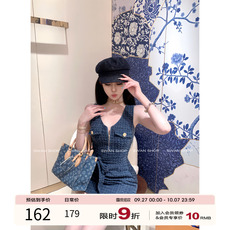 美式西部牛仔风辣妹连衣裙穿搭复古收腰抹胸牛仔a字裙夏女小个子