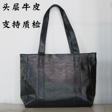倪妮同款软皮简约风格休闲女包头层牛皮斜挎单肩包黑色大包购物袋