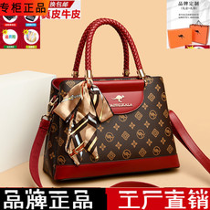 袋鼠品牌时尚单肩包斜挎大包大容量牛皮女包中年妈妈婆婆奶奶软皮