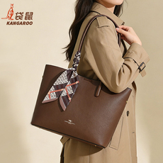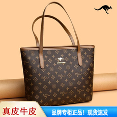 袋鼠正品真皮女包大容量托特包2026新款时尚单肩牛皮大包包送妈妈