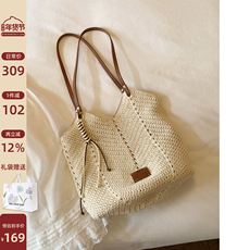 南风Chio2nd 牛皮肩带手工编织包慵懒风钩织托特包包女士单肩大包