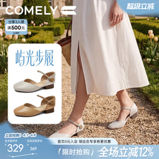 金利来女鞋春秋复古法式方头坡跟单鞋金属牛皮软面低跟玛丽珍鞋女