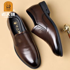 SDEP秋季商务休闲皮鞋头层牛皮软皮软底防滑耐磨一脚蹬爸爸男鞋子