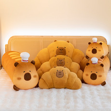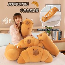 烘焙系列卡皮巴拉水豚抱枕法棍大面包床头靠枕夹腿牛角包腰靠毛绒