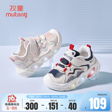 牧童男童学步鞋春夏闪灯运动鞋女童时尚软底透气网面儿童发光童鞋