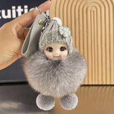 韩国创意大眼萌娃娃汽车钥匙扣挂件毛绒可爱真狐狸毛公仔包包挂饰