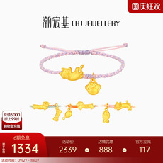 潮宏基宠物联萌足金手链黄金手绳转运串珠5D硬金猫猫腊肠狗礼物女