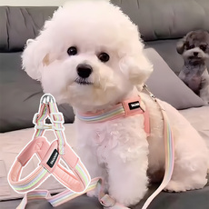 高颜值撞色胸背带狗狗牵引绳透气不勒脖小型犬约克夏遛狗绳子狗链