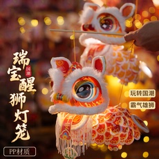新年春节国潮醒狮灯笼手工diy制作材料儿童手提狮子花灯网红爆款