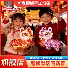 新年春节元宵国潮醒狮灯笼手工diy材料包儿童手提狮子灯笼玩具灯