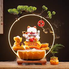 招财猫水摆件办公室装饰循环水面前猫台店桌铺发财创意流IJX开业
