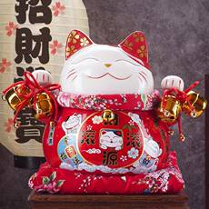 摆招财猫开10寸红色喜猫家居装饰店NBI铺收银创意礼品招财业猫台