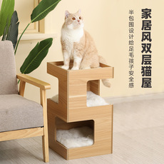 木质宠物猫窝四季通用猫房子实木猫爬架板式猫台猫窝一体创意批发