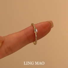 韩系金色爆闪方糖闪钻戒指轻奢小众高级感气质食指戒精致百搭指环