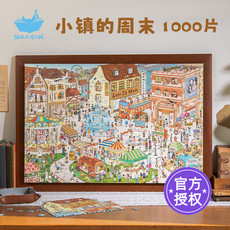 猫的天空之城拼图1000片小镇的周末成人版治愈系高级相框挂墙画