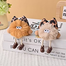 YILIYA可爱獭兔毛豹纹蝴蝶结小煤球包包挂件毛绒车钥匙扣挂饰礼物