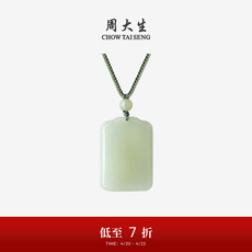 周大生和田玉平安扣吊坠玉石项链情侣款挂坠玉佩生日礼物送男朋友