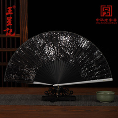 杭州王星记扇子仿乌木手绘宣纸字画扇中国风古风折扇礼品收藏男扇