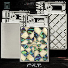 日本玛乐思打火机Marvelous镶嵌天然贝壳深雕竹编纹防风火机男士