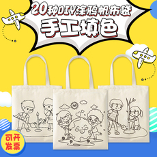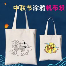 中秋节diy涂鸦帆布包手提中号手绘亲子活动环保袋儿童卡通涂色包