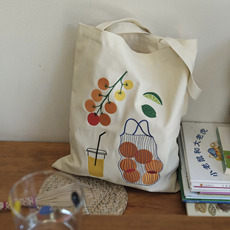 日系高圆圆同款ball chain刺绣甜甜圈环保袋购物袋大容量女帆布包