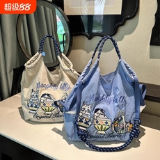 原创大容量慵懒风手拎单肩包环保购物袋简约韩版学生文艺帆布书包
