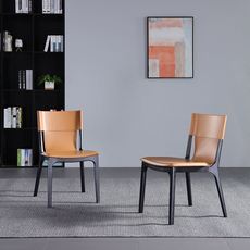现代马鞍皮实木餐椅简约意式轻奢带扶手酒店样板间马鞍皮靠背椅