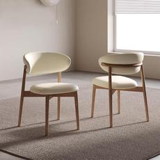 法式奶油风轻奢实木餐椅家用现代简约中古风原木意式餐桌靠背椅子