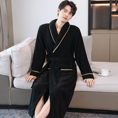 睡衣男士冬季加长加厚款法兰绒睡袍长袖大码纯色珊瑚绒浴袍家居服