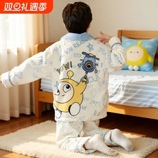 芬腾珊瑚绒儿童睡衣男童三层加厚夹棉冬季保暖卡通拉链家居服套装