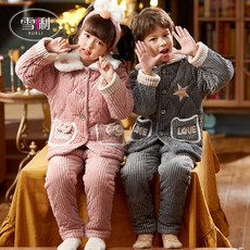 儿童睡衣冬季加厚款男童法兰绒三层夹棉加绒男孩女童珊瑚绒家居服