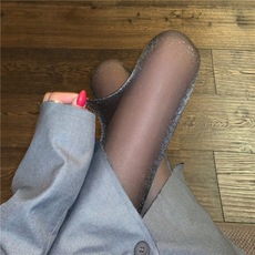 秋冬季珠光丝袜子银葱加绒加厚假透肉连裤袜银丝亮丝保暖打底裤女