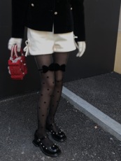 cnorahk 原创小众设计珠光波点黑色丝袜少女蝴蝶结百搭光腿袜神器