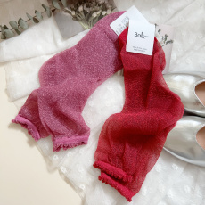 韩国糖果色丝袜春夏彩色珠光中筒丝袜木耳边薄款闪亮丝玻璃丝短袜