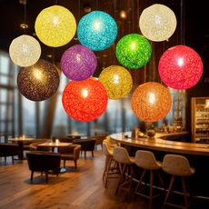 复古麻球吊灯圆球编织灯清吧服装店餐厅饭店商场藤艺装饰球形灯具